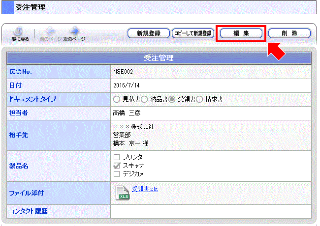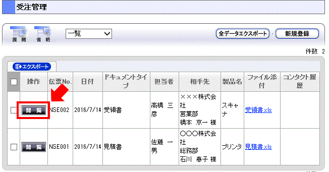 1.編集したいデータの[閲覧]ボタンをクリックします。