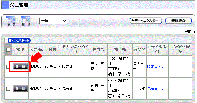 1.閲覧したいデータの[閲覧]ボタンをクリックします。